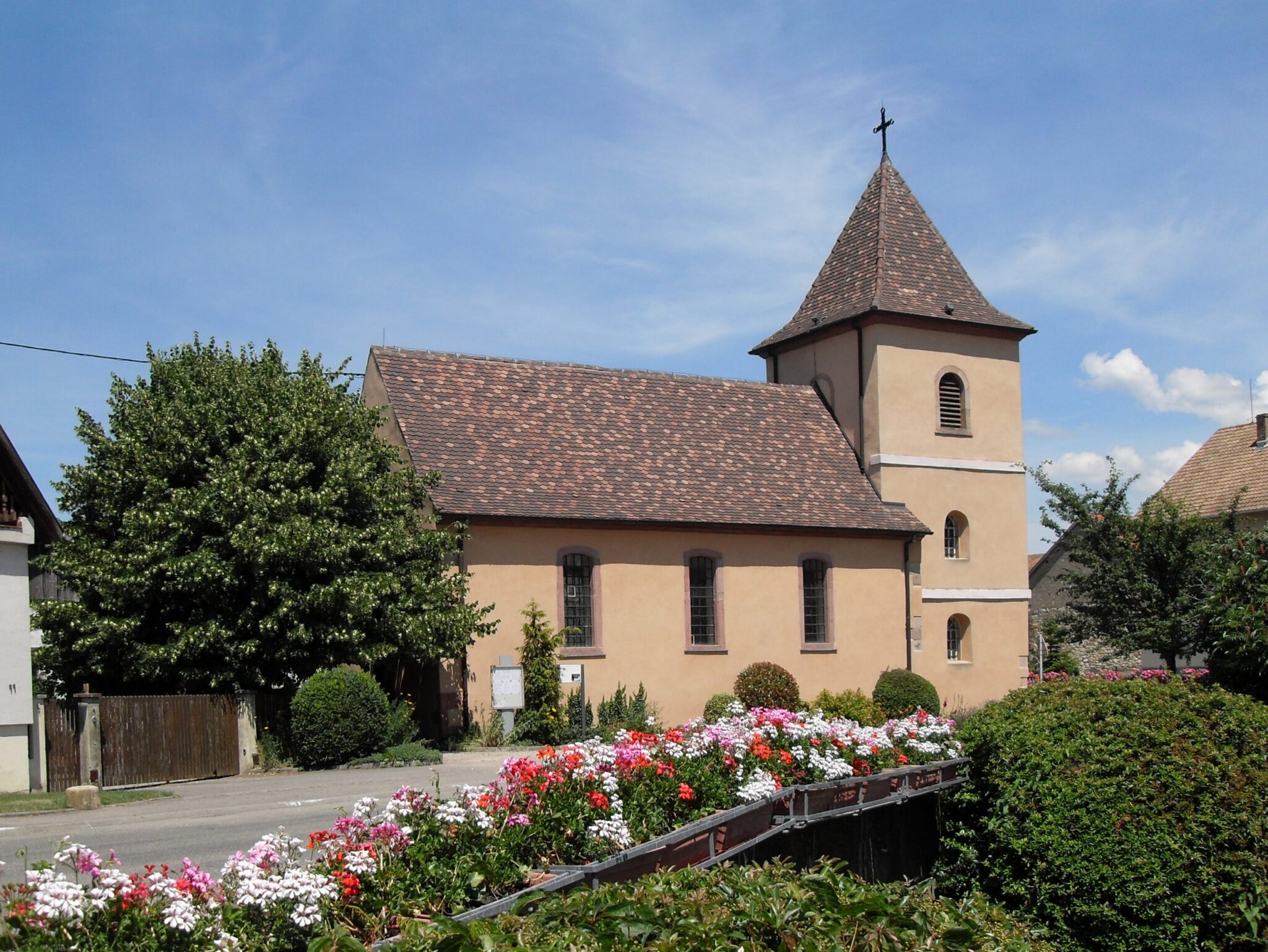 Conjugués du pasteur André MULLER et du curé SAUREL d’Obersaasheim, après une lutte acharnée de 20 ans, l’église est enfin restaurée et agrandie de 1764 à 1765, sur les plans de l’architecte Blaise de Rungs, comme le rappelle la plaque commémorative encastrée au-dessus de la porte d’entrée. L’ancien clocher médiéval qui abrite le chœur est maintenu.